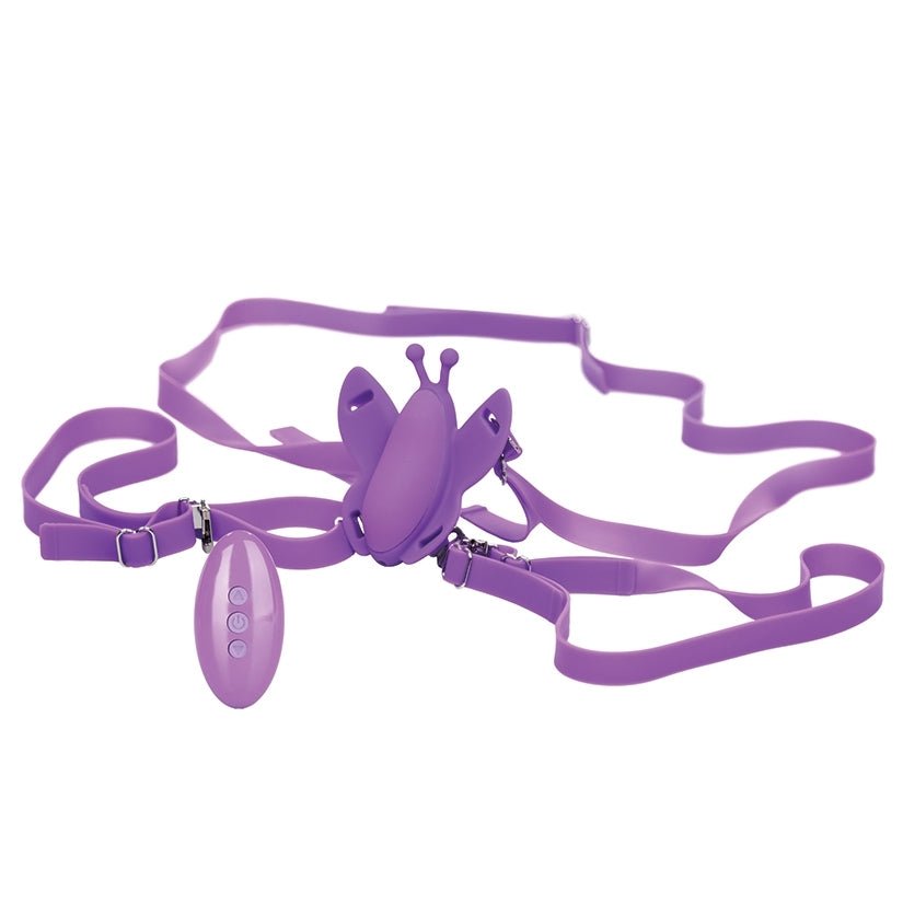 massager with fluttering wings, fully adjustable harness and a remote control