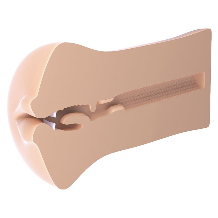 luscious lips, past the supple tongue and realistic teeth into the textured